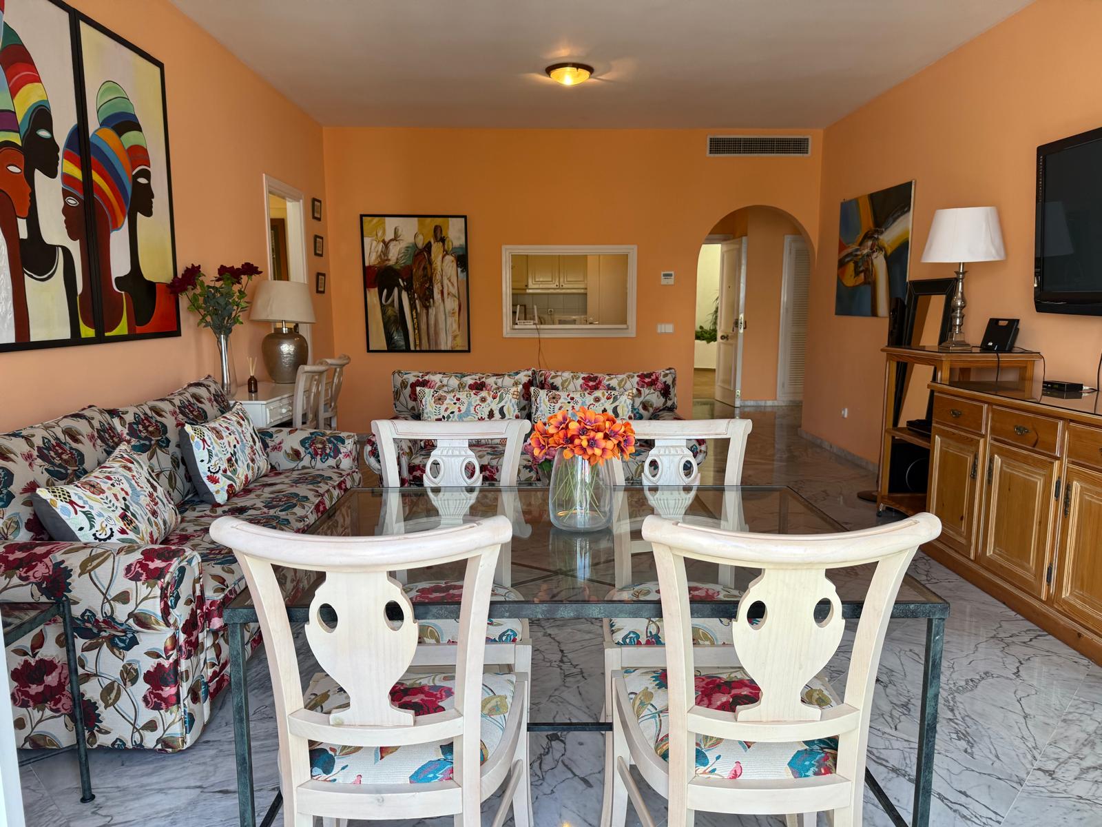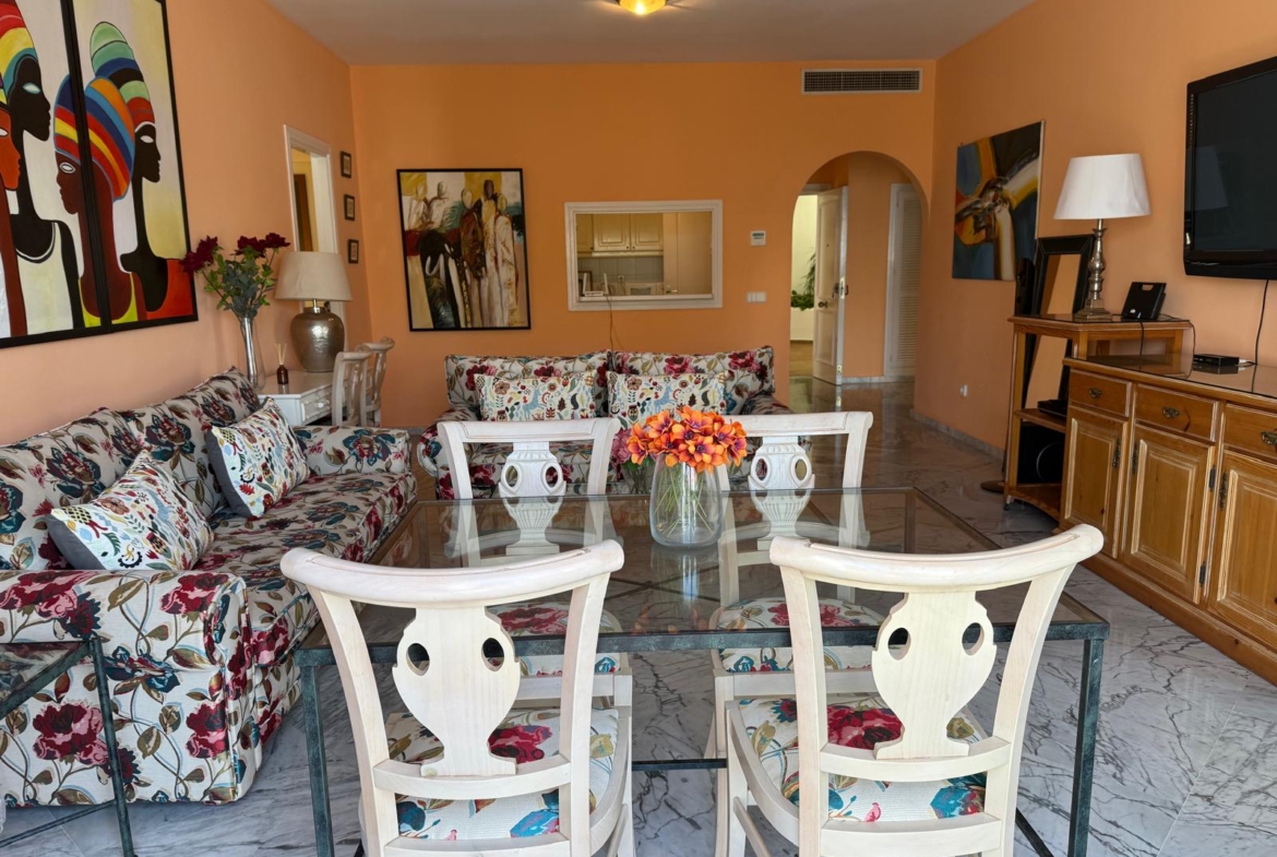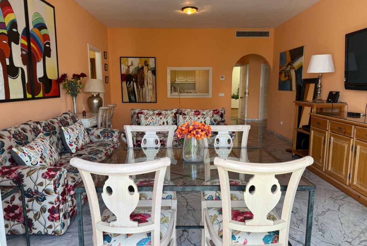 Estupendo apartamento de 2 dormitorios situado en Casa Sevilla de Playas del Duque, en uno de los mejores complejos residenciales de Puerto Banús, a tan solo un paseo de la playa, y de todos los servicios necesarios que ofrece la zona. Una ubicación excelente donde podrá disfrutar del uso exclusivo de los jardines privados, así como de sus piscinas y restaurantes y acceso directo a la playa.